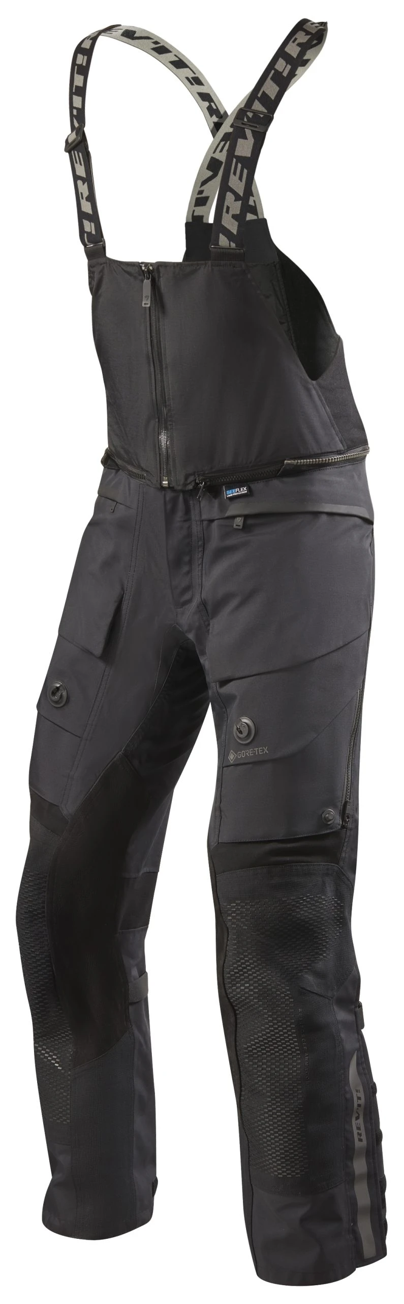 Dominate all terrain and weather conditions with the Dominator 3 GTX Pants from REV’IT!. These top of the line pants feature 3-layer GORE-TEX laminate waterproofing, reinforced Armacor fabric in the knees for durability / abrasion resistance, a detachable bib for extra protection against the elements, cargo pockets in the upper leg for extra storage, as well as VCS Aquadefence panels for extra airflow when temperatures climb. Rounding out the package are SEEFLEX CE level 2 knee protectors and SEESMART CE level 1 hip protectors, helping prevent damage to those fragile areas in the event of a fall.